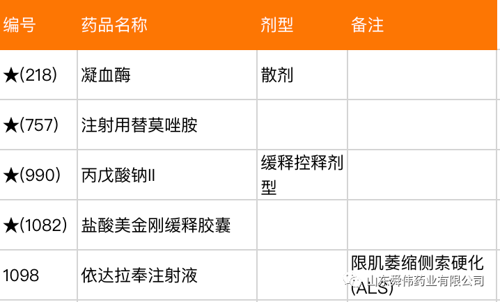 僅新增了4個(gè)品種,分別是凝血酶散劑,注射用替莫唑胺,丙戊酸鈉II緩釋控釋劑型,鹽酸美金剛緩釋膠囊和依達(dá)拉奉注射液。