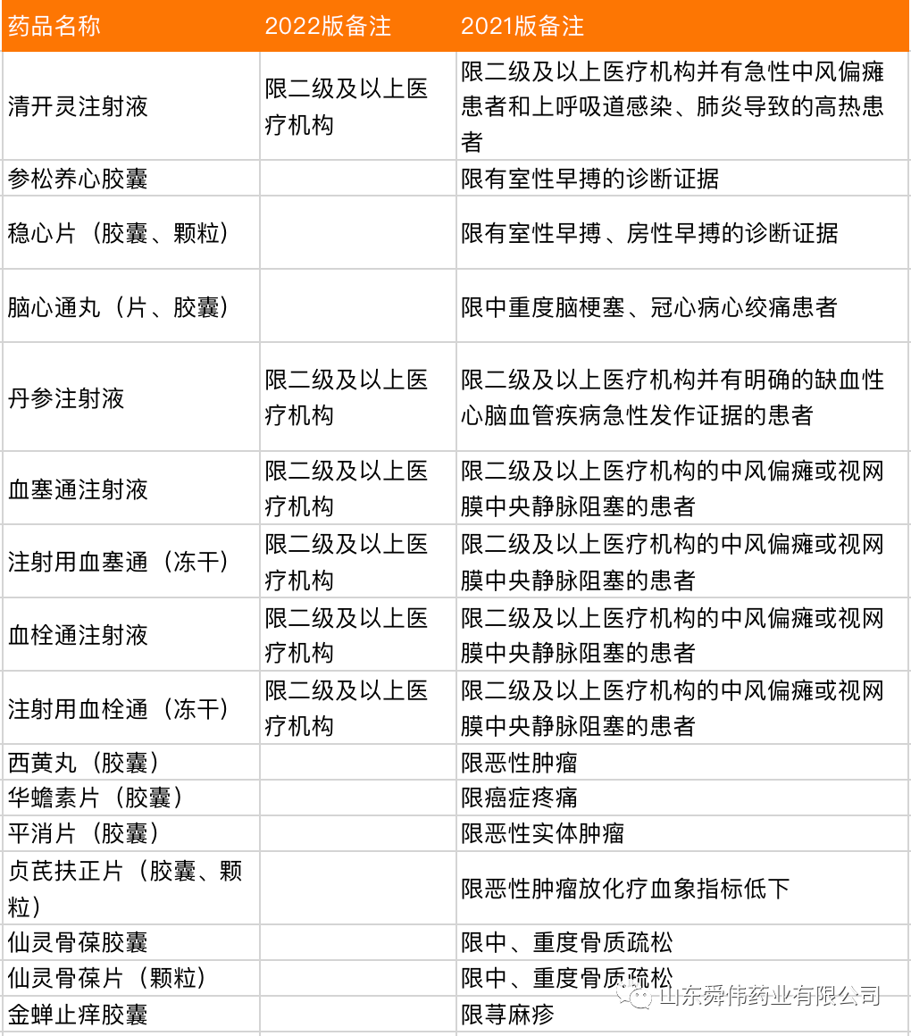 2022版醫(yī)保中成藥調(diào)整備注藥品