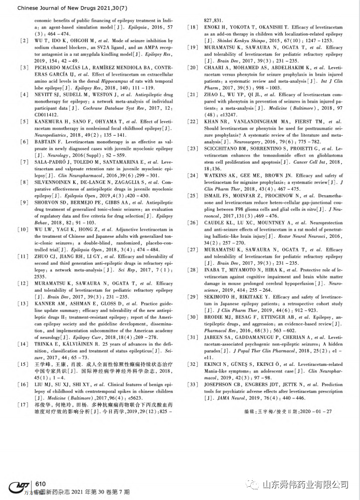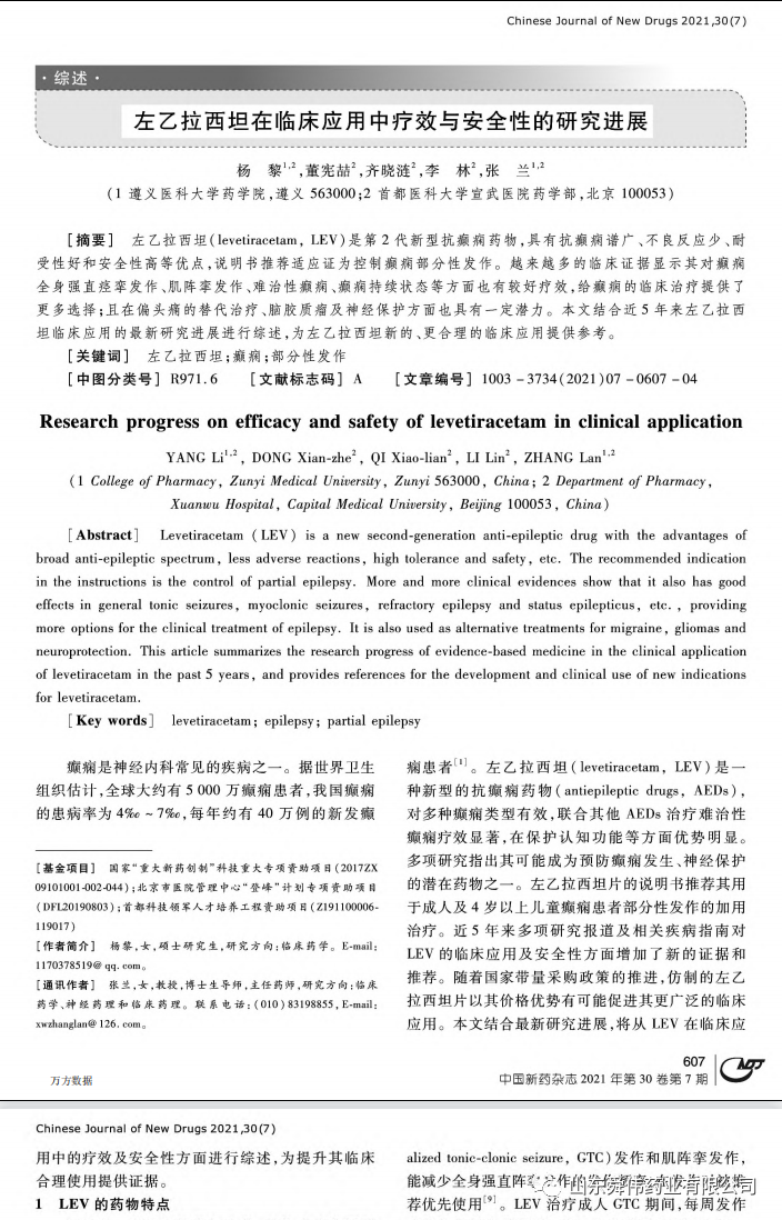 坦臨床應(yīng)用的最新研究進(jìn)展進(jìn)行綜述,為左乙拉西坦新的、更合理的臨床應(yīng)用提供參考。